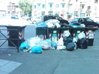 Basta prendere la metropolitana e scendere alla fermata Massaua ed uscendo in superficie di fronte ad una farmacia, ci troviamo lo spettacolo di un cumulo di "monnezza"in salsa subalpina. Abbandonata da giorni sotto il sole già caldo.